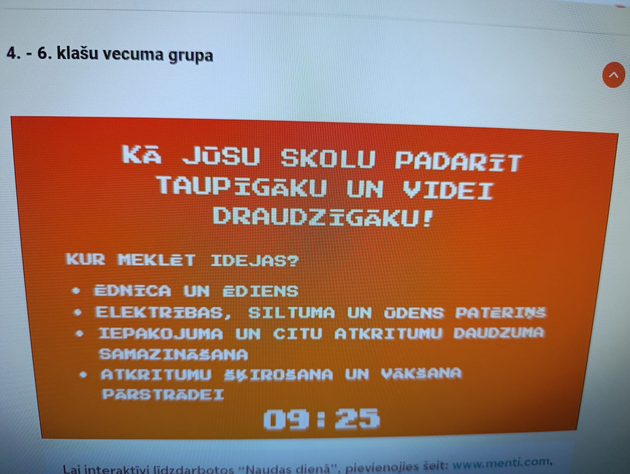 Skolēniem bija jāveic arī noslēguma uzdevums – jāizsaka savs viedoklis un jāapkopo idejas par to, kā skolas varētu kļūt taupīgākas un videi draudzīgākas.