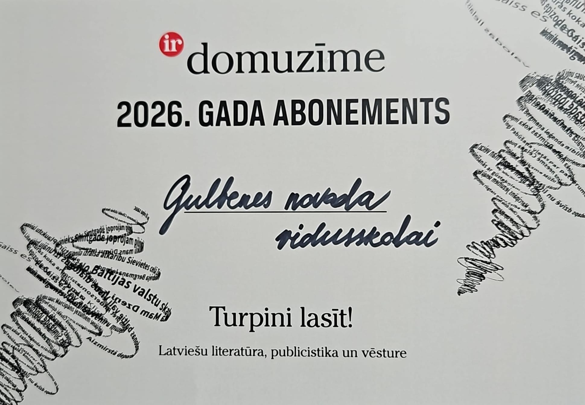 Literārā žurnāla “Domuzīmes” speciālo balvu šajā konkursā ieguva 12.u klases skolniece Ance Nikola Leišavniece, kura mīlestību pret savu valsti pauda argumentētajā esejā. Gulbenes novada vidusskola saņēma žurnāla abonementu gadam, pateicoties Ances Nikolas ieguldītajam darbam.