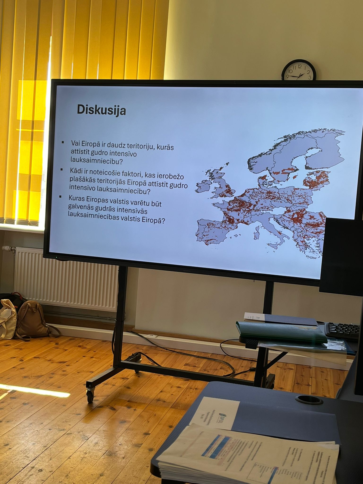 Izmantojot ģeogrāfiskās informācijas sistēmu (ĢIS) datus, skolēni veidoja interaktīvu Eiropas karti, kurā atspoguļoja tās teritorijas, kas izmantojamas gudrai intensīvai lauksaimniecībai.