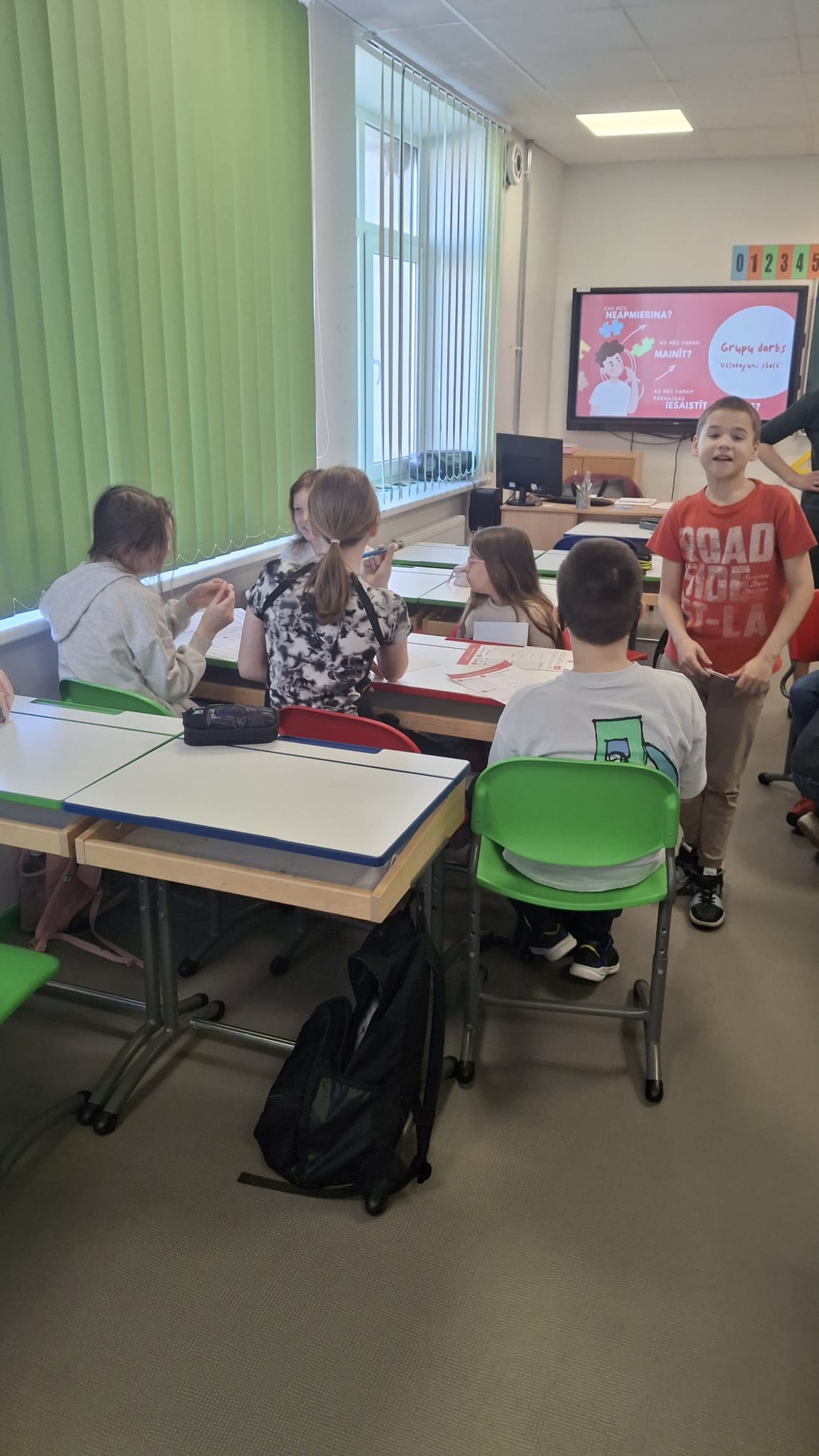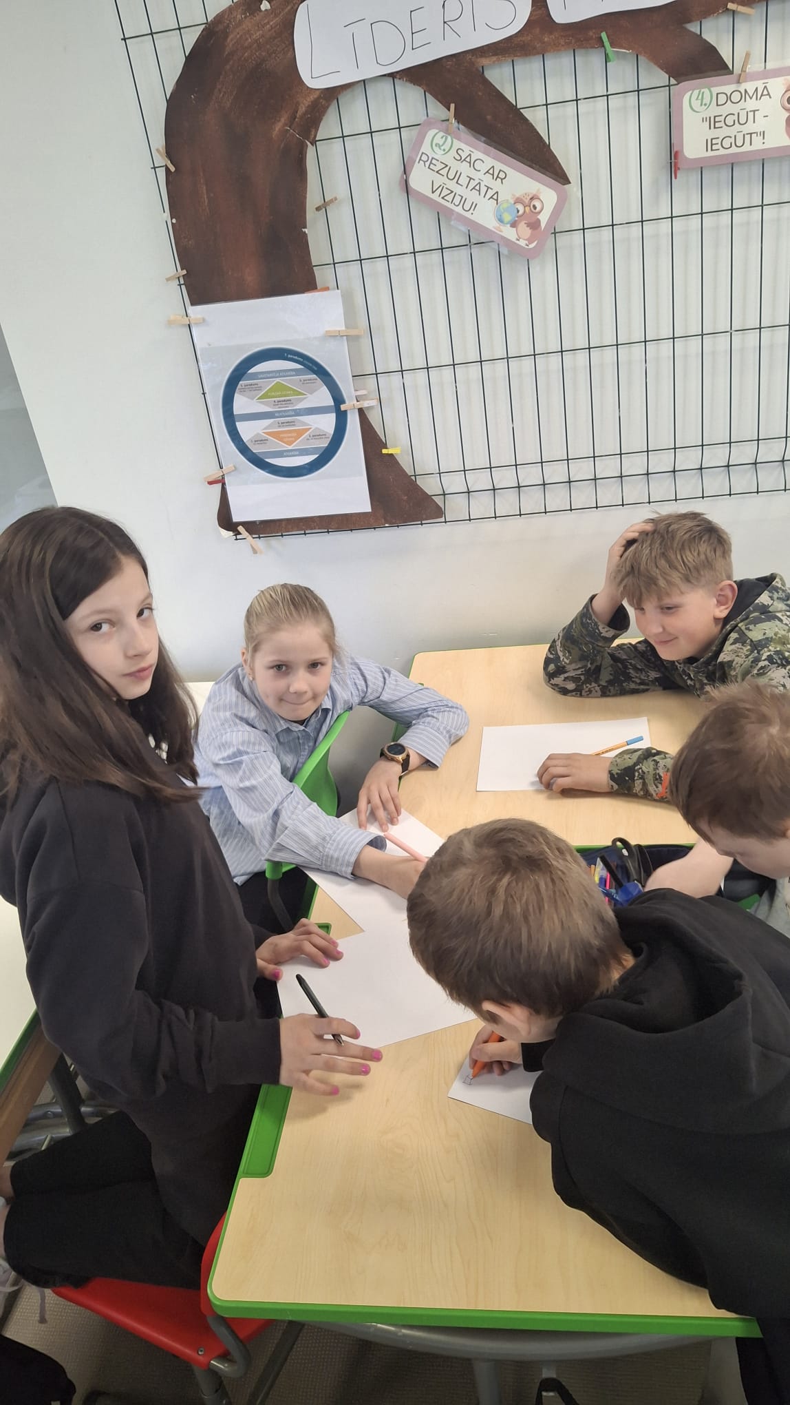 Darbojoties grupās, skolēni domāja idejas, kā uzlabot dzīvi skolā un klasē, tās prezentēja.